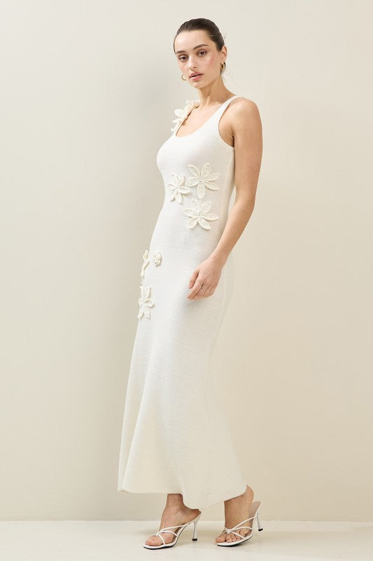 White Crochet Spaghetti Strap Pearl Hollow Out Dress