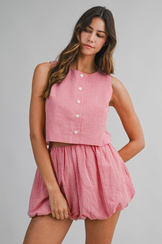 Gingham Plaid Top And Bubble Shorts Set