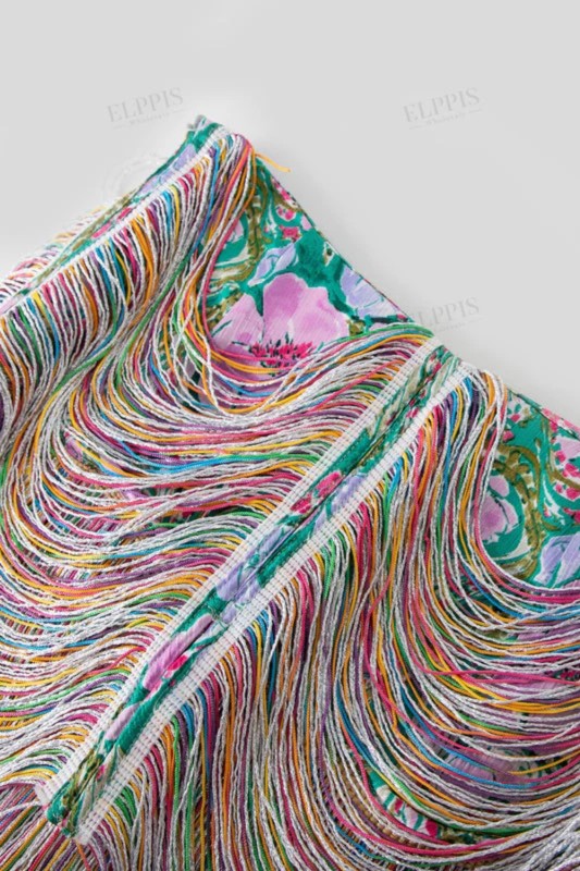 Shorts with fringes.Zipper closure. Floral shorts.