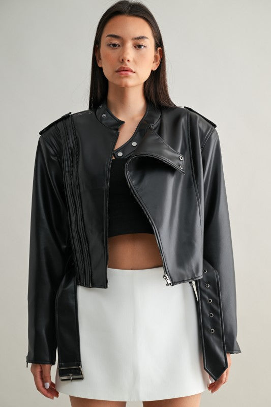 Vegan Leather Cropped Biker Jacket